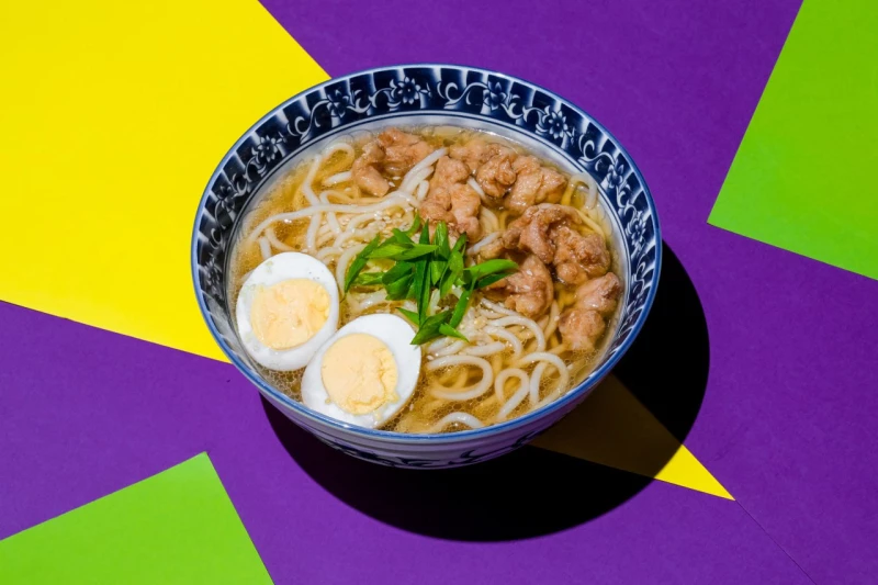 Состав: Лапша, Яйцо куриное маринованное, Куриное бедро, Крахмал, Масло растительное, Лук зеленый, Куриный бульон, Кунжут